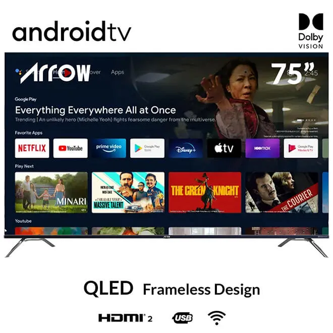 • تقنية QLED 4K: تلفزيون اركيو 75 بوصة يقدم صورة بجودة 4K بفضل تقنية QLED التي توفر ألوانًا زاهية وتفاصيل دقيقة تجعل كل مشهد ينبض بالحياة.