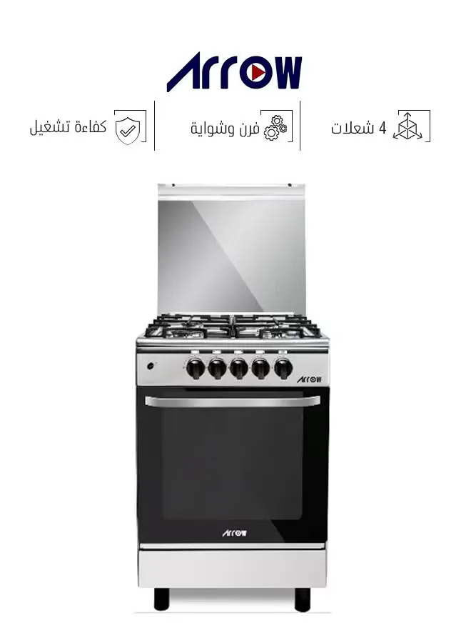 فرن غاز – 4 شعلات – 55*55 سم – أمان كامل – ستانلس ستيل – مصري – RO-5555GSF