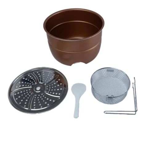 - الوعاء الداخلي: ألومنيوم غير لاصق مع وعاء ذهبي عالي الجودة لتوزيع حرارة متساوٍ.