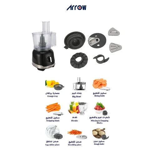 - الوظائف الأساسية: التقطيع والتقطيع ومعالجة الشفرة على شكل حرف S والخلط وعصير البرتقال.
