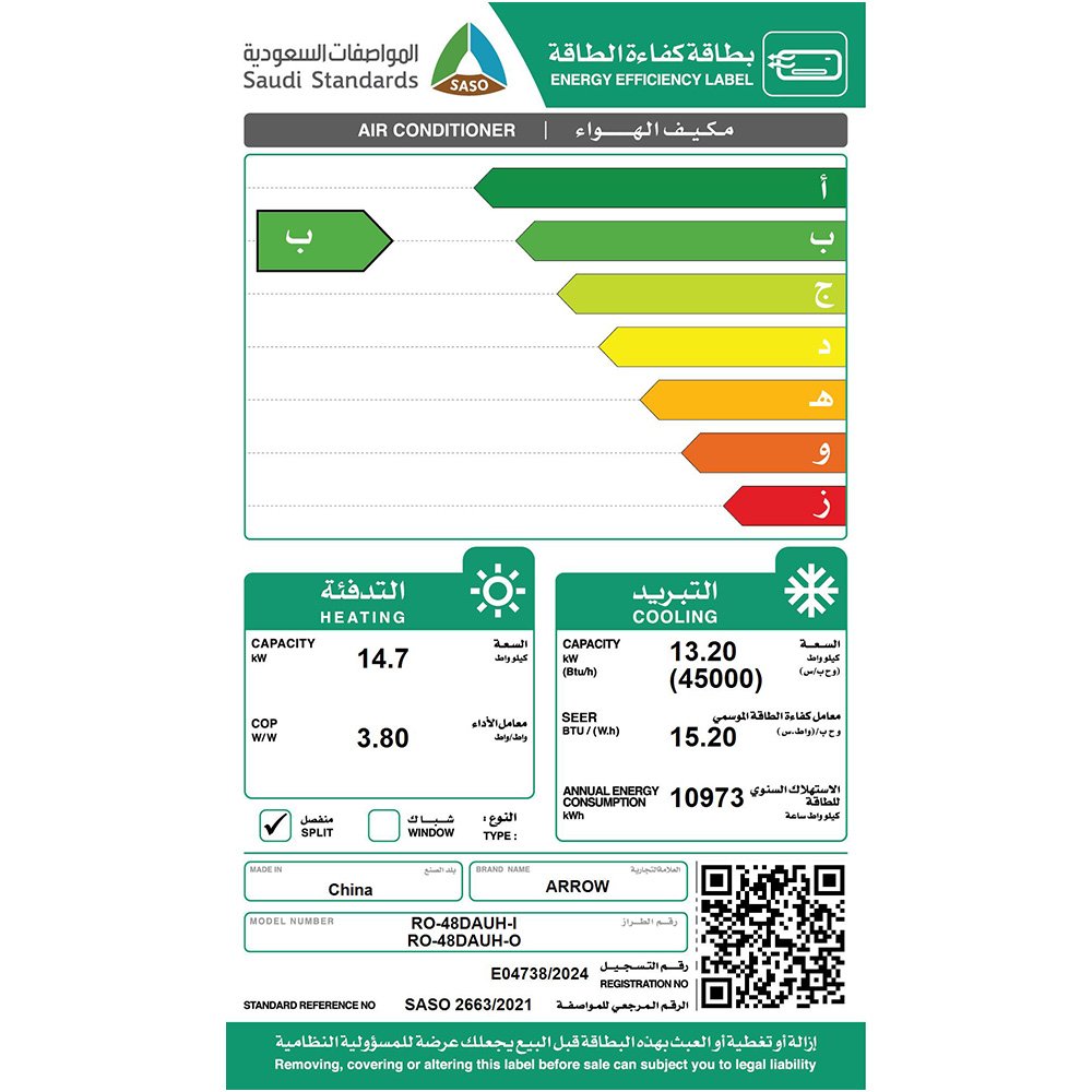 - السعة: 48,000 وحدة (4 طن)